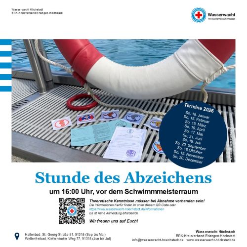 An der Stunde des Abzeichens hast du die Möglichkeit bei der Wasserwacht Höchstadt dir Schwimmabzeichen abnehmen zu lassen.